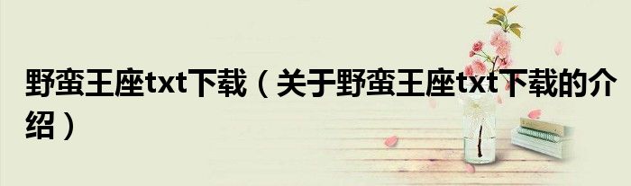 野蛮王座txt下载(关于野蛮王座txt下载的介绍)