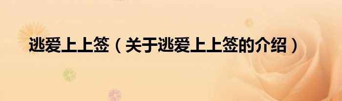大家好,今天小乐来为大家解答以上的问题。逃爱上上签,关于逃爱上上签的介绍很多人还不知道,现在让我们一起来看看吧!