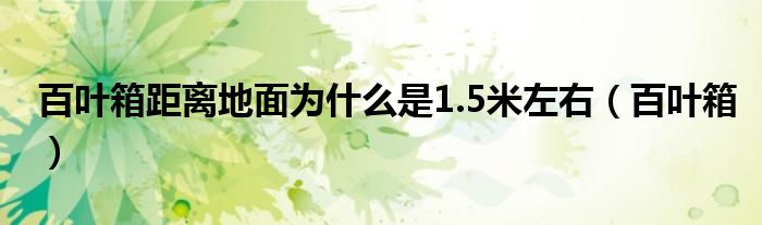 关于百叶箱距离地面为什么是1.5米左右,百叶箱这个很多人还不知道,今天菲菲来为大家解答以上的问题,现在让我们一起来看看吧!