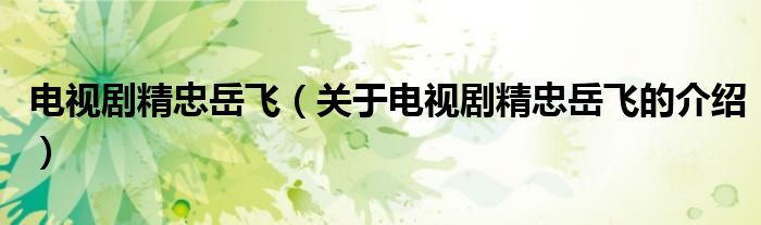 大家好,今天小乐来为大家解答以上的问题。电视剧精忠岳飞,关于电视剧精忠岳飞的介绍很多人还不知道,现在让我们一起来看看吧!