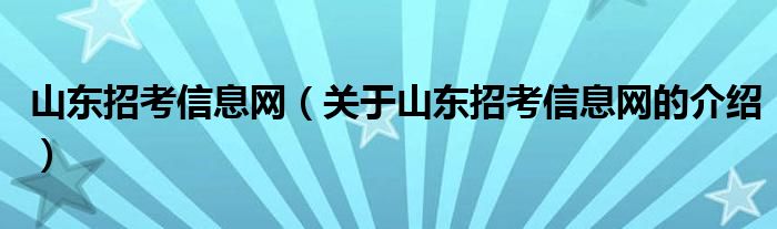 山东招考信息网(关于山东招考信息网的介绍)