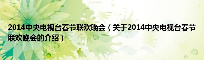 大家好,今天小乐来为大家解答以上的问题。2014中央电视台春节联欢晚会,关于2014中央电视台春节联欢晚会的介绍很多人还不知道,现在让我们一起来看看吧!