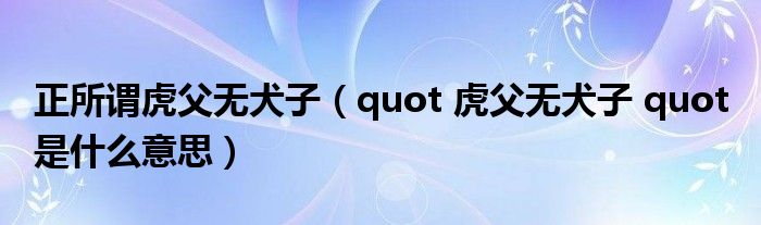 关于正所谓虎父无犬子,quot 虎父无犬子 quot 是什么意思这个很多人还不知道,今天菲菲来为大家解答以上的问题,现在让我们一起来看看吧!