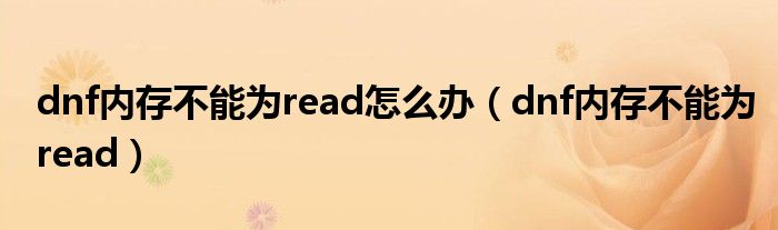 关于dnf内存不能为read怎么办,dnf内存不能为read这个很多人还不知道,今天菲菲来为大家解答以上的问题,现在让我们一起来看看吧!