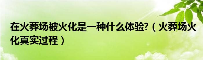 关于在火葬场被火化是一种什么体验?,火葬场火化真实过程这个很多人还不知道,今天菲菲来为大家解答以上的问题,现在让我们一起来看看吧!