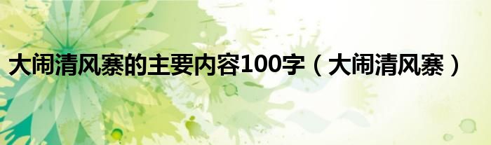 大闹清风寨的主要内容100字(大闹清风寨)