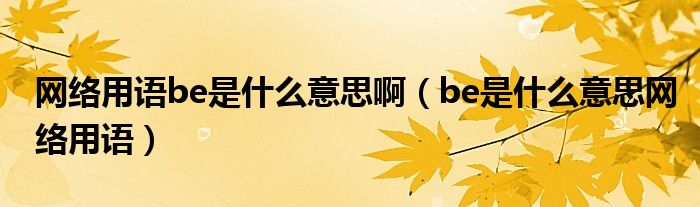 网络用语be是什么意思啊(be是什么意思网络用语)