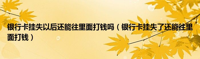 关于银行卡挂失以后还能往里面打钱吗,银行卡挂失了还能往里面打钱这个很多人还不知道,今天菲菲来为大家解答以上的问题,现在让我们一起来看看吧!