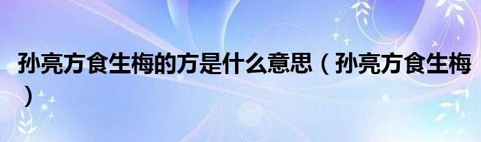 关于孙亮方食生梅的方是什么意思,孙亮方食生梅这个很多人还不知道,今天菲菲来为大家解答以上的问题,现在让我们一起来看看吧!