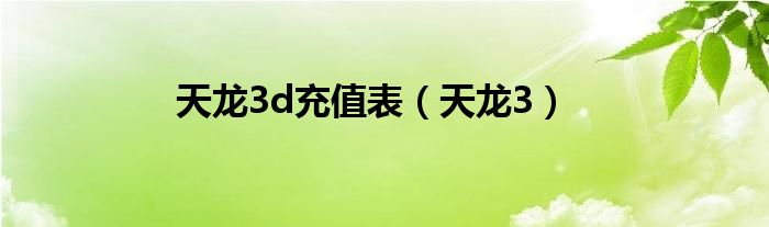 关于天龙3d充值表,天龙3这个很多人还不知道,今天菲菲来为大家解答以上的问题,现在让我们一起来看看吧!