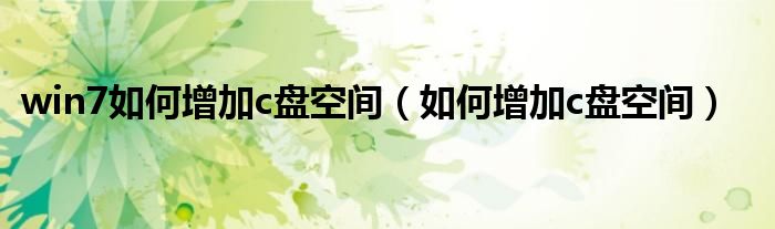 关于win7如何增加c盘空间,如何增加c盘空间这个很多人还不知道,今天菲菲来为大家解答以上的问题,现在让我们一起来看看吧!