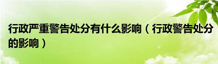 关于行政严重警告处分有什么影响,行政警告处分的影响这个很多人还不知道,今天菲菲来为大家解答以上的问题,现在让我们一起来看看吧!