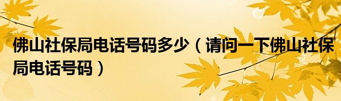 关于佛山社保局电话号码多少,请问一下佛山社保局电话号码这个很多人还不知道,今天菲菲来为大家解答以上的问题,现在让我们一起来看看吧!