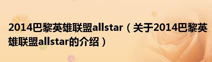 大家好,今天小乐来为大家解答以上的问题。2014巴黎英雄联盟allstar,关于2014巴黎英雄联盟allstar的介绍很多人还不知道,现在让我们一起来看看吧!