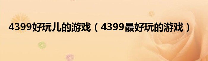 关于4399好玩儿的游戏,4399最好玩的游戏这个很多人还不知道,今天菲菲来为大家解答以上的问题,现在让我们一起来看看吧!