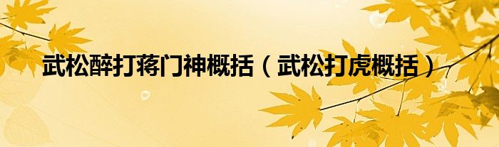 关于武松醉打蒋门神概括,武松打虎概括这个很多人还不知道,今天菲菲来为大家解答以上的问题,现在让我们一起来看看吧!