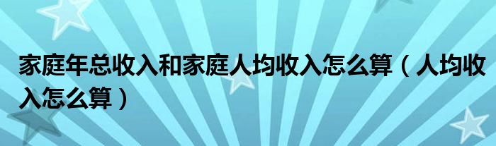 关于家庭年总收入和家庭人均收入怎么算,人均收入怎么算这个很多人还不知道,今天菲菲来为大家解答以上的问题,现在让我们一起来看看吧!