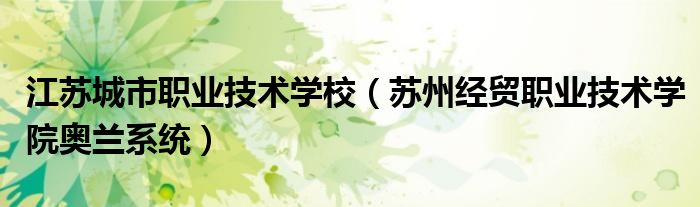 关于江苏城市职业技术学校,苏州经贸职业技术学院奥兰系统这个很多人还不知道,今天菲菲来为大家解答以上的问题,现在让我们一起来看看吧!