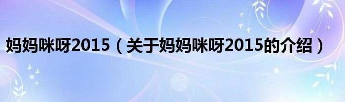 妈妈咪呀2015(关于妈妈咪呀2015的介绍)