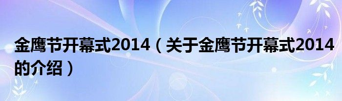 金鹰节开幕式2014(关于金鹰节开幕式2014的介绍)