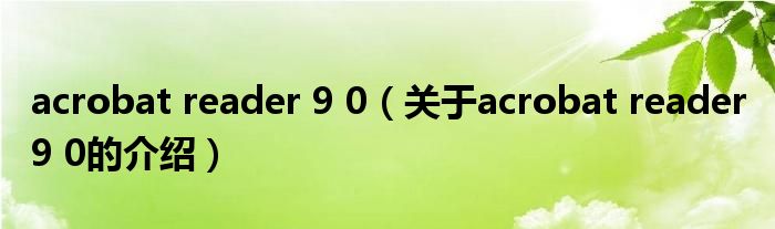 acrobat reader 9 0(关于acrobat reader 9 0的介绍)
