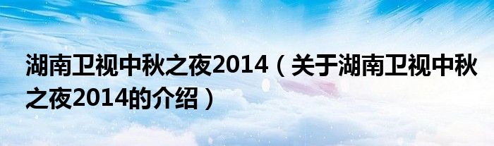 大家好,今天小乐来为大家解答以上的问题。湖南卫视中秋之夜2014,关于湖南卫视中秋之夜2014的介绍很多人还不知道,现在让我们一起来看看吧!