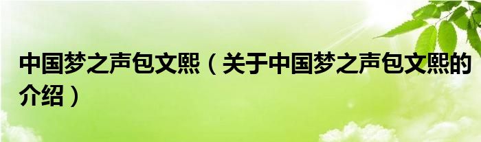 中国梦之声包文熙(关于中国梦之声包文熙的介绍)