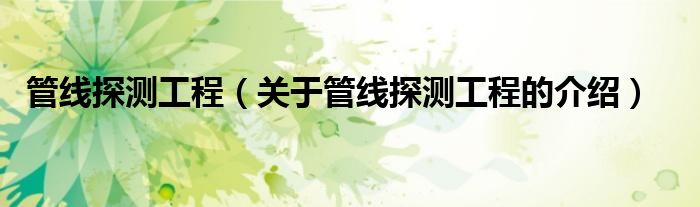 大家好,今天小乐来为大家解答以上的问题。管线探测工程,关于管线探测工程的介绍很多人还不知道,现在让我们一起来看看吧!