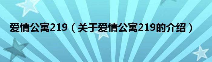 大家好,今天小乐来为大家解答以上的问题。爱情公寓219,关于爱情公寓219的介绍很多人还不知道,现在让我们一起来看看吧!