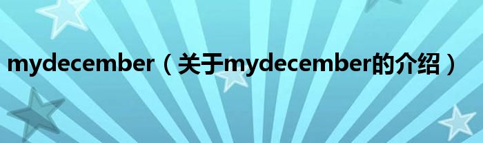 大家好,今天小乐来为大家解答以上的问题。mydecember,关于mydecember的介绍很多人还不知道,现在让我们一起来看看吧!