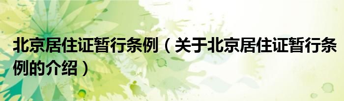 大家好,今天小乐来为大家解答以上的问题。北京居住证暂行条例,关于北京居住证暂行条例的介绍很多人还不知道,现在让我们一起来看看吧!