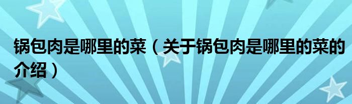 大家好,小都来为大家解答以上的问题。锅包肉是哪里的菜,关于锅包肉是哪里的菜的介绍很多人还不知道,现在让我们一起来看看吧!