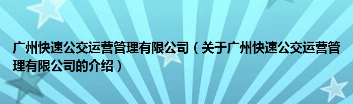 广州快速公交运营管理有限公司(关于广州快速公交运营管理有限公司的介绍)