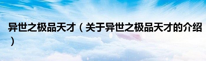 大家好,小都来为大家解答以上的问题。异世之极品天才,关于异世之极品天才的介绍很多人还不知道,现在让我们一起来看看吧!