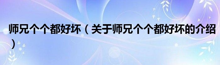 大家好,小都来为大家解答以上的问题。师兄个个都好坏,关于师兄个个都好坏的介绍很多人还不知道,现在让我们一起来看看吧!