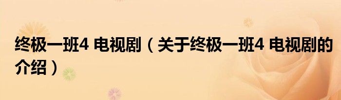 终极一班4 电视剧(关于终极一班4 电视剧的介绍)