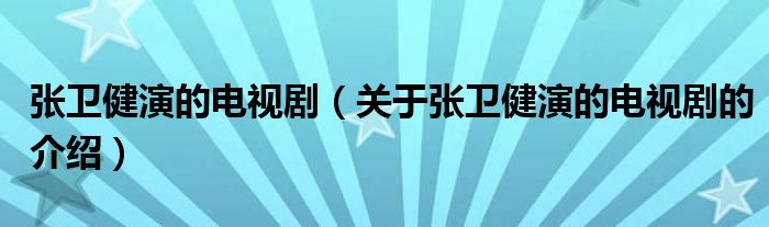 大家好,小都来为大家解答以上的问题。张卫健演的电视剧,关于张卫健演的电视剧的介绍很多人还不知道,现在让我们一起来看看吧!