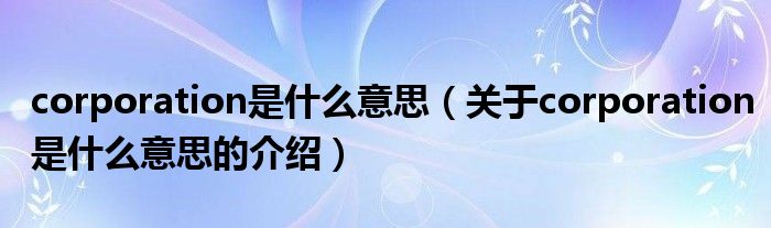 大家好,小都来为大家解答以上的问题。corporation是什么意思,关于corporation是什么意思的介绍很多人还不知道,现在让我们一起来看看吧!