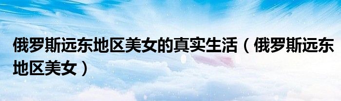 关于俄罗斯远东地区美女的真实生活,俄罗斯远东地区美女这个很多人还不知道,今天菲菲来为大家解答以上的问题,现在让我们一起来看看吧!