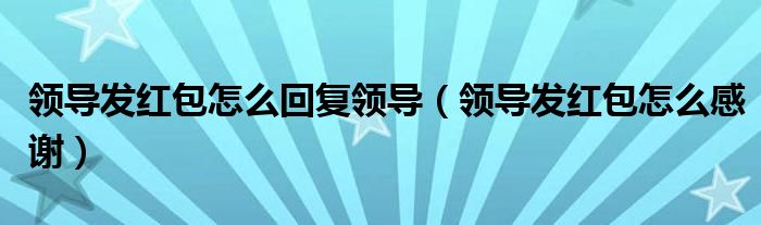 关于领导发红包怎么回复领导,领导发红包怎么感谢这个很多人还不知道,今天菲菲来为大家解答以上的问题,现在让我们一起来看看吧!