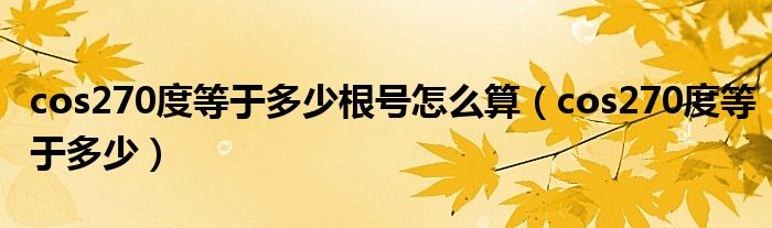 大家好,小晋来为大家解答以下问题,关于cos270度等于多少根号怎么算,cos270度等于多少很多人还不知道,今天让我们一起来看看吧!