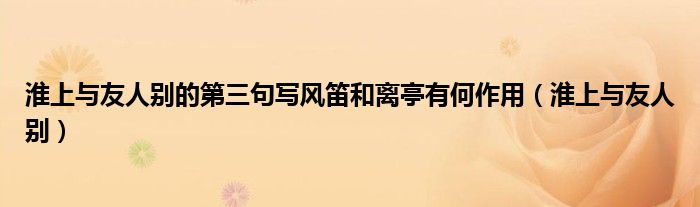 大家好,小晋来为大家解答以下问题,关于淮上与友人别的第三句写风笛和离亭有何作用,淮上与友人别很多人还不知道,今天让我们一起来看看吧!