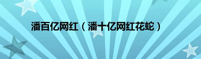 大家好,小晋来为大家解答以下问题,关于潘百亿网红,潘十亿网红花蛇很多人还不知道,今天让我们一起来看看吧!