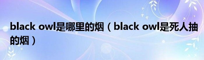 大家好,小晋来为大家解答以下问题,关于black owl是哪里的烟,black owl是死人抽的烟很多人还不知道,今天让我们一起来看看吧!