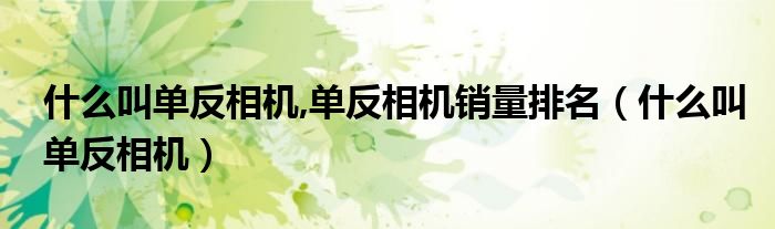 单反相机是什么意思?