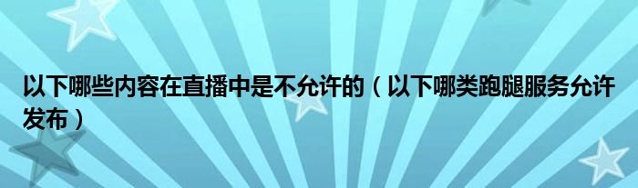 关于以下哪些内容在直播中是不允许的,以下哪类跑腿服务允许发布这个很多人还不知道,今天菲菲来为大家解答以上的问题,现在让我们一起来看看吧!
