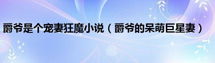 关于爵爷是个宠妻狂魔小说,爵爷的呆萌巨星妻这个很多人还不知道,今天菲菲来为大家解答以上的问题,现在让我们一起来看看吧!
