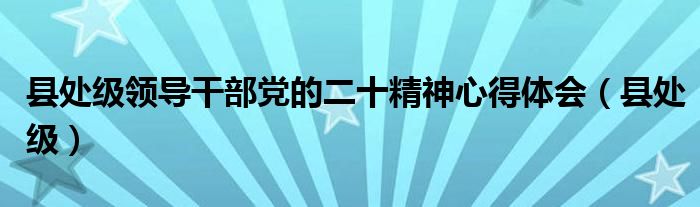 关于县处级领导干部党的二十精神心得体会,县处级这个很多人还不知道,今天菲菲来为大家解答以上的问题,现在让我们一起来看看吧!