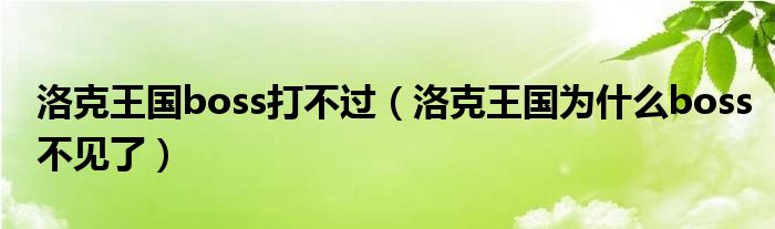 关于洛克王国boss打不过,洛克王国为什么boss不见了这个很多人还不知道,今天菲菲来为大家解答以上的问题,现在让我们一起来看看吧!