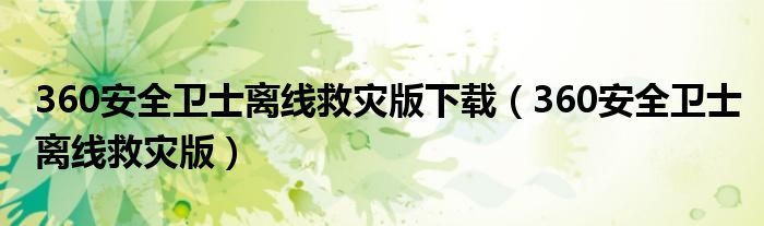 大家好,小小来为大家解答以下问题,360安全卫士离线救灾版下载,360安全卫士离线救灾版很多朋友还不知道,现在让我们一起来看看吧!